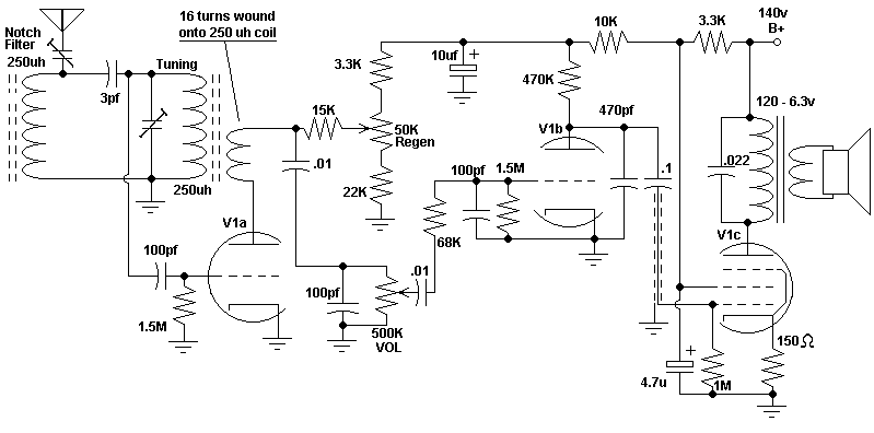| Schematic of 1-tube radio. |