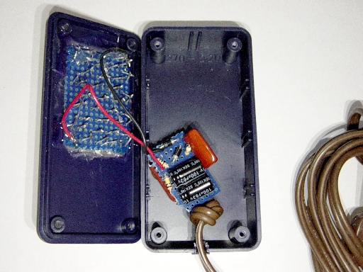 I don't remember the brand name, but these night lights use a circuit that is self current-limiting. Thus, it can power a string of any number of LED's from 1 to 40! (The night lights use ONE LED. I modified several of them to use TWO, and one unit in the hallway now uses FOUR!) This circuit is quite ingenious, in that it uses a .68 capacitor as a voltage dropping element. This also serves to limit the current to about 12ma into one LED, and 8ma into this string of 36. Why 36? Because it comes out to 104v, and it's an even number. :) Plus, I had already assembled this array, and didn't want to modify it further.